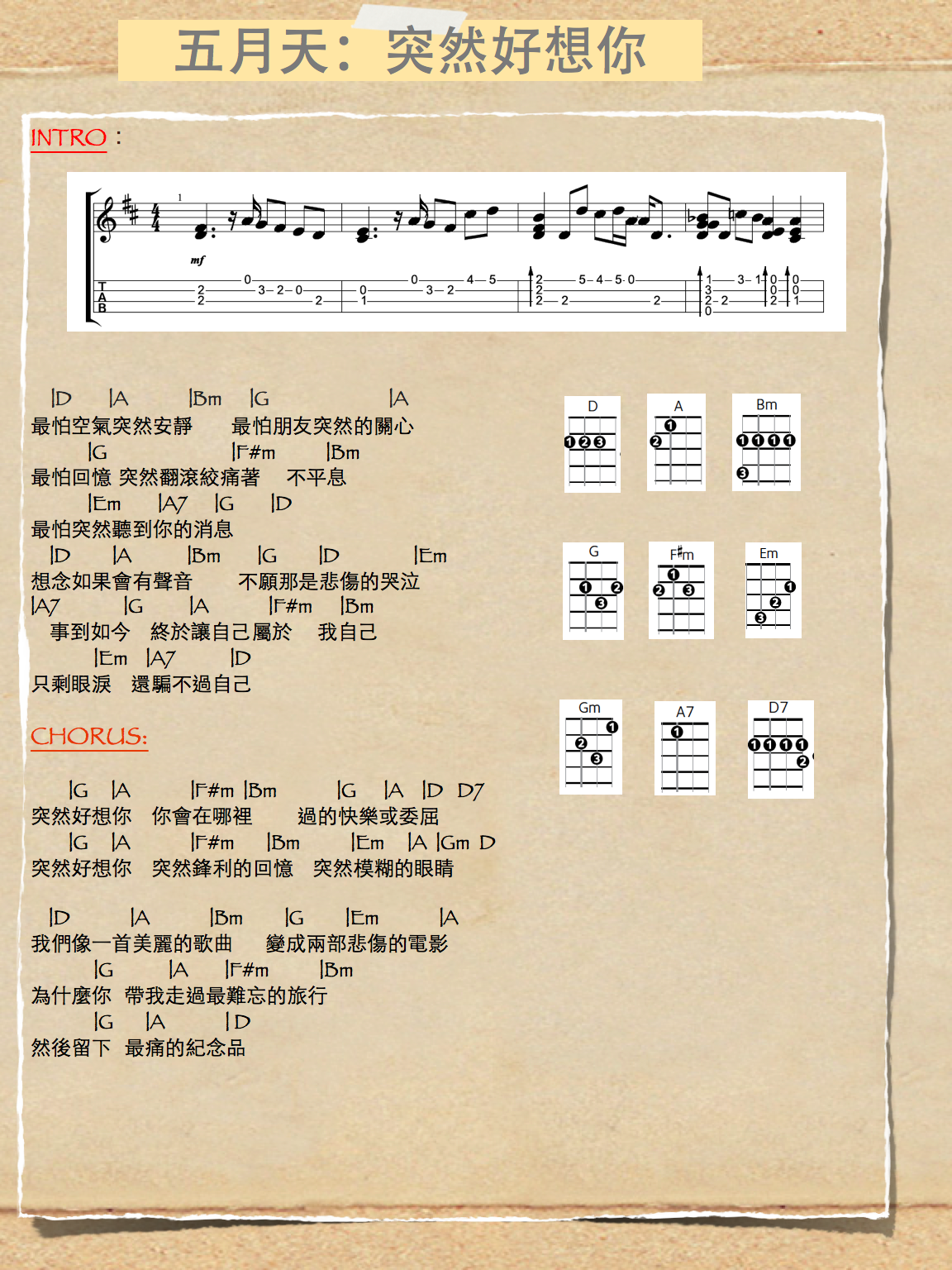 突然 好 想 你 Chord : 最怕空气突然安静 最怕朋友突然的关心 最怕回忆突然翻滚 绞痛着不平息 最怕突然听到你的消息.