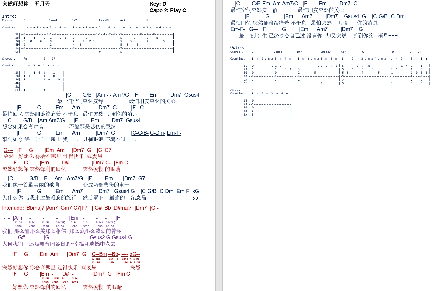 突然 好 想 你 Chord