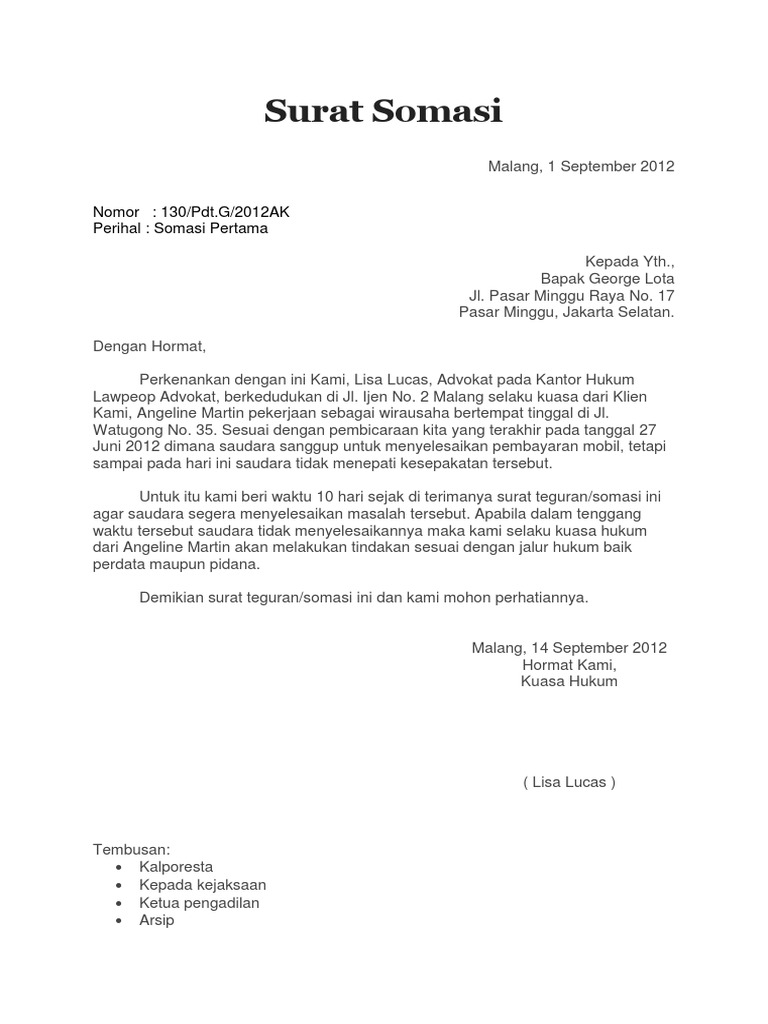 Somasi Adalah Dan Contohnya