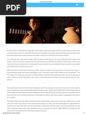 The Cracked Pot Story Pdf : But the poor cracked pot was ashamed of its own imperfection, and miserable that it was able to accomplish only half of what it had been made to do.